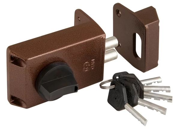 Замок накладной дисковый ЗНД1А/Д предназначен для запирания дверей толщиной 35-45 мм. Замок универсальный, устанавливается как на правые, так и на левые двери. Автоматическое запирание. Количество секретных комбинаций - 120 000. Два ригеля диаметром 11 мм. Габаритные размеры: 100х64х22,5 мм.