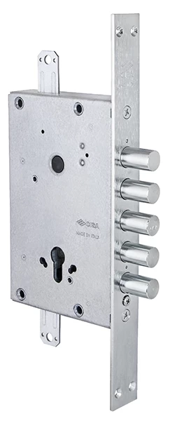 CISA REVOLUTION 56.525.48 - Корпус замка врезного цилиндрового, без защелки, универсальный, c лицевой планкой. Имеет особую систему шестереночного редуктора REVOLUTION, которое делает выдвижение ригелей плавным и бесшумным. Замок обладает высоким качеством и при выборе хорошего цилиндра эффективно защитит дом или офис от недоброжелателей. Данные замки рекомендуется устанавливать на дверь в паре с сувальдными замками. Cisa (Италия) - один из флагманов мирового производства замков и синоним качества и надёжности.