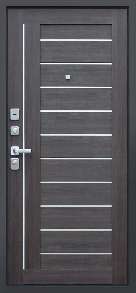 Надежная входная Дверь Дуэт орех рифленый премиум класса по цене 40 500 руб. Большая толщина стали защитит от проникновения в ваш дом, квартиру или коттедж. Используется очень качественная фурнитура: замки, цилиндры, ручки, защелки. Покрытие и отделка двери изготовлено под внимательным контролем производителя. Дверь имеет долгий срок службы и гарантию.