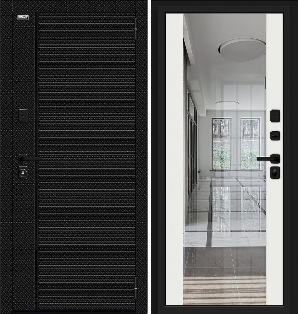 Надежная входная Дверь Браво Лайнер-3 Black Carbon/Off-white премиум класса по цене 44 500 руб. Большая толщина стали защитит от проникновения в ваш дом, квартиру или коттедж. Используется очень качественная фурнитура: замки, цилиндры, ручки, защелки. Покрытие и отделка двери изготовлено под внимательным контролем производителя. Дверь имеет долгий срок службы и гарантию.