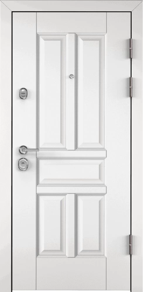 Надежная входная Дверь Цербер 3К Мистраль Белый Сменная панель премиум класса по цене 38 000 руб. Большая толщина стали защитит от проникновения в ваш дом, квартиру или коттедж. Используется очень качественная фурнитура: замки, цилиндры, ручки, защелки. Покрытие и отделка двери изготовлено под внимательным контролем производителя. Дверь имеет долгий срок службы и гарантию.